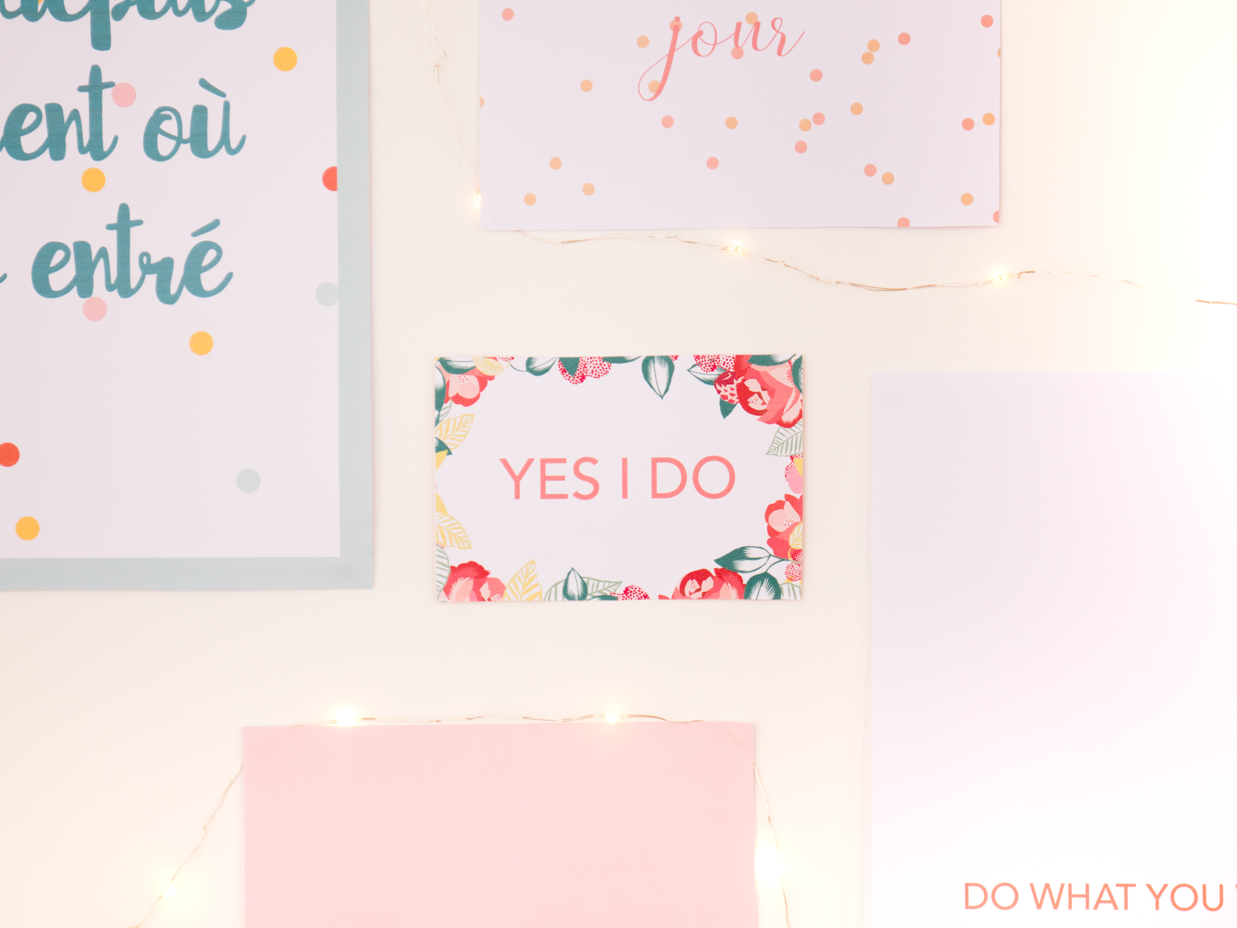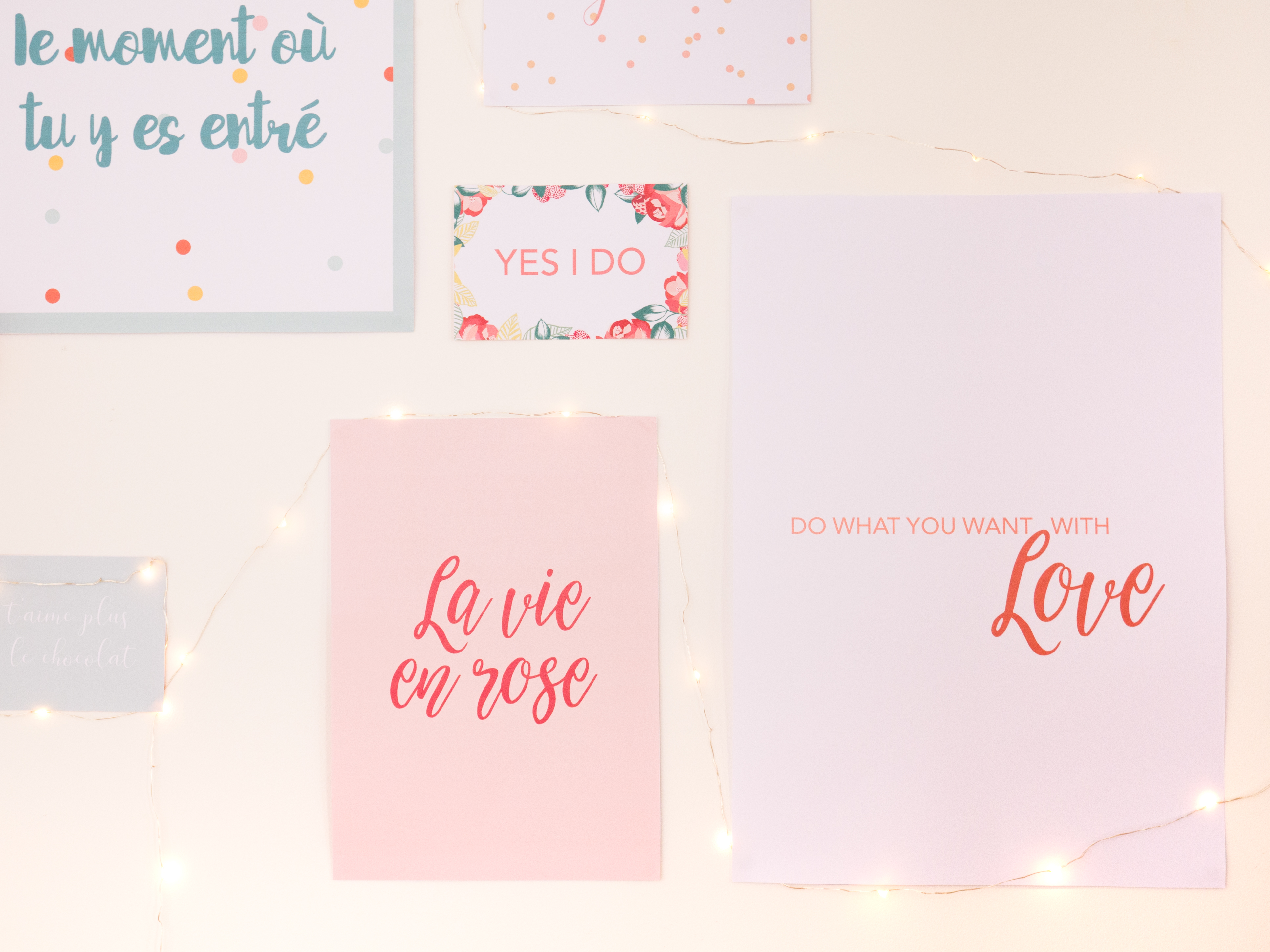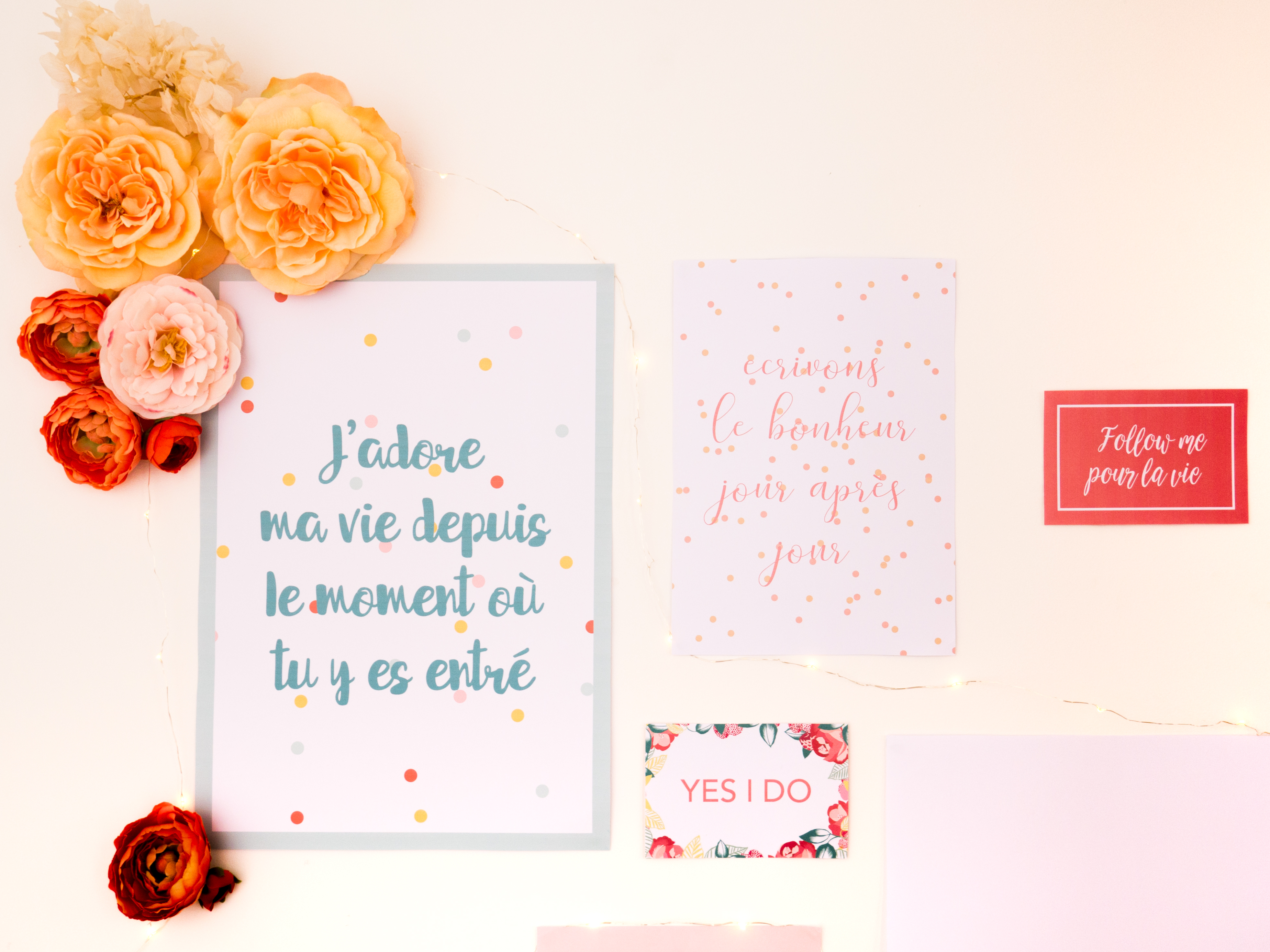 Comme vous le savez, le mariage approche à grands pas et le stress nous gagne aussi peu à peu ! Nous avons besoin  de positivité au maximum pour nous préparer à ce grand jour ! Nous avons donc habillé notre mur de chambre de jolies affiches aux wordings inspirants, tout pour nous motiver et commencer à nous mettre dans l’ambiance de ce jour si important pour nous !